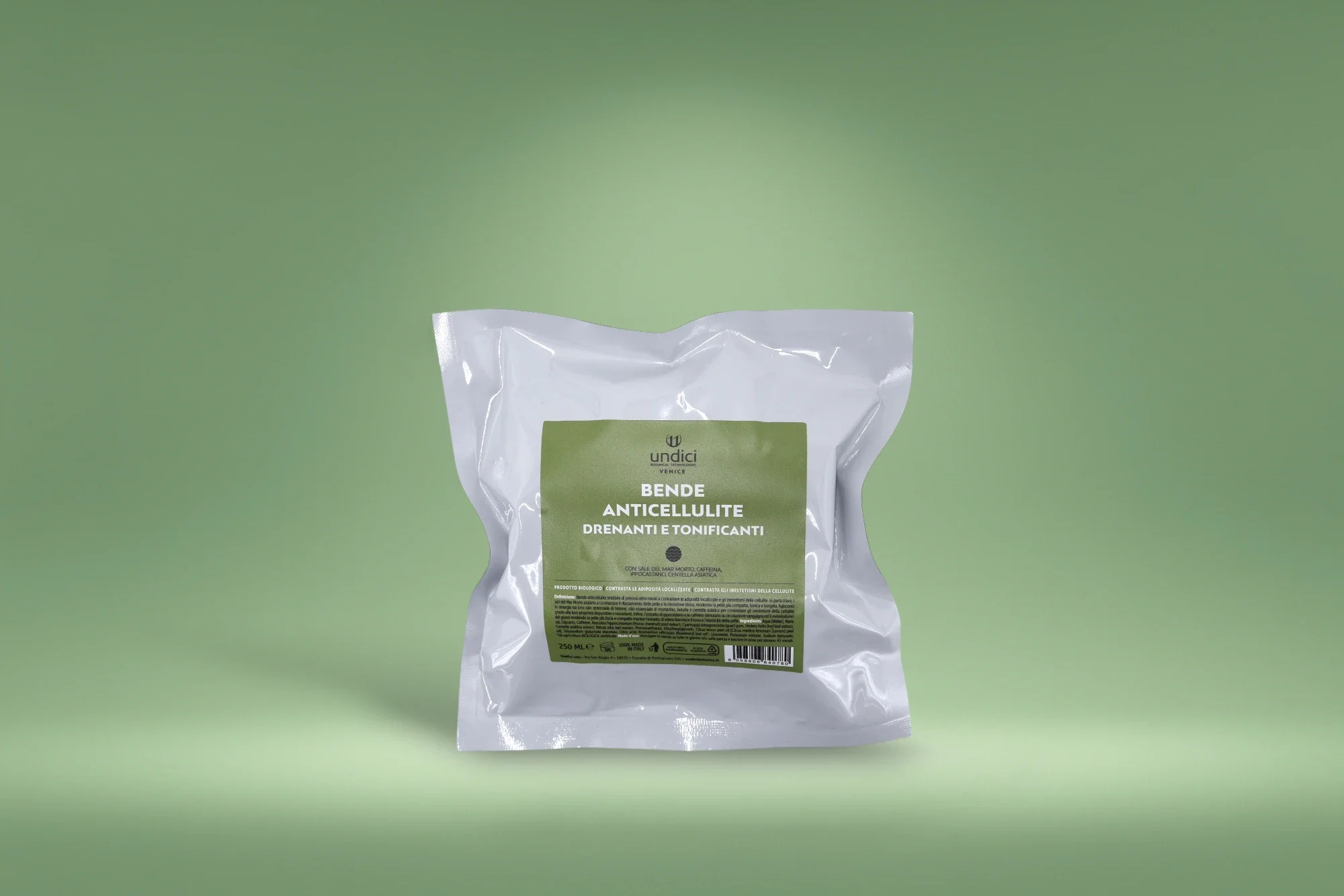 Un trattamento professionale pronto all’uso, imbibito con 250 ml di attivi concentrati per contrastare cellulite, gonfiori e adiposità localizzate. Le bende stimolano il drenaggio, favoriscono la compattezza e donano leggerezza ai tessuti, lasciando la pelle più tonica, levigata e armoniosa.